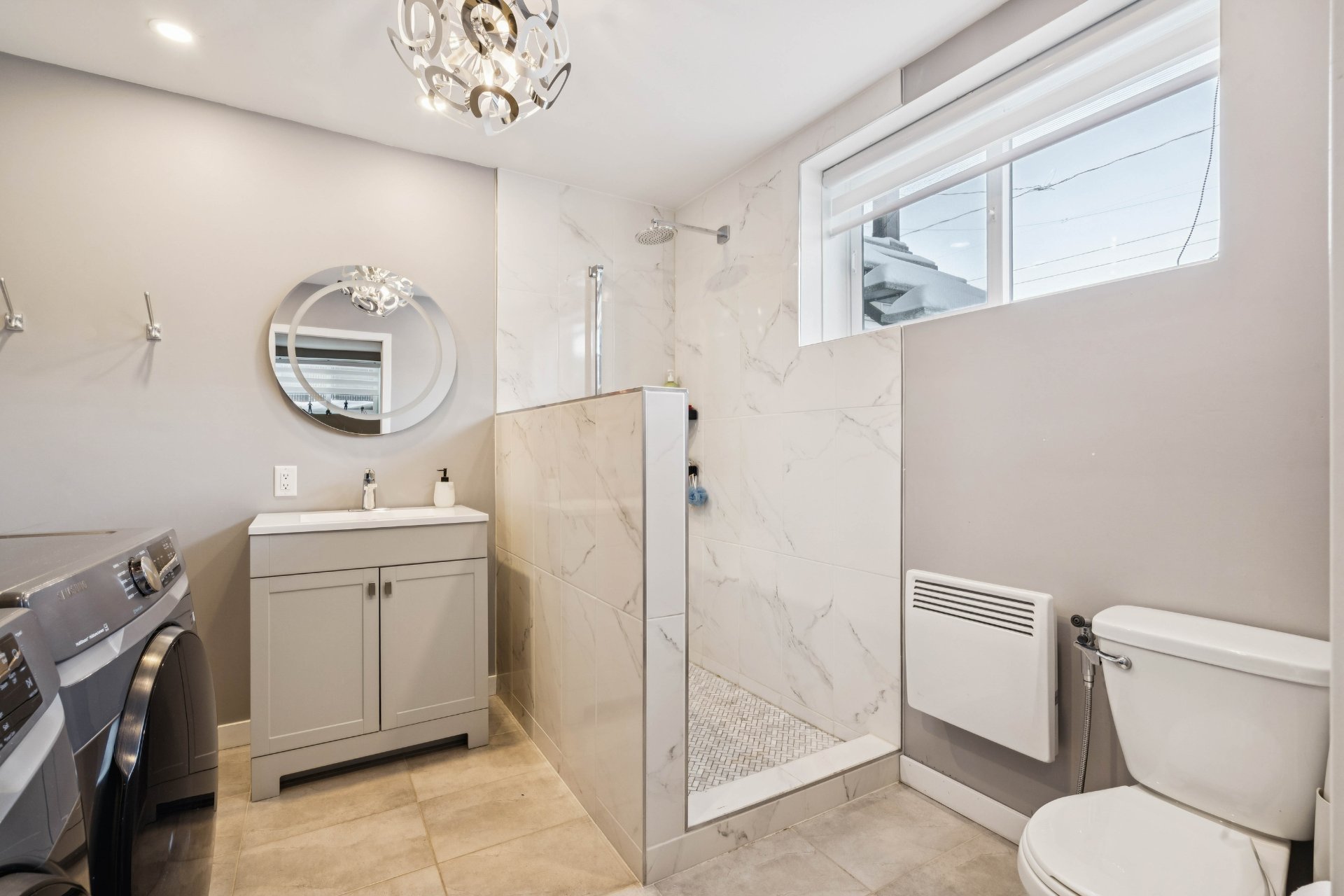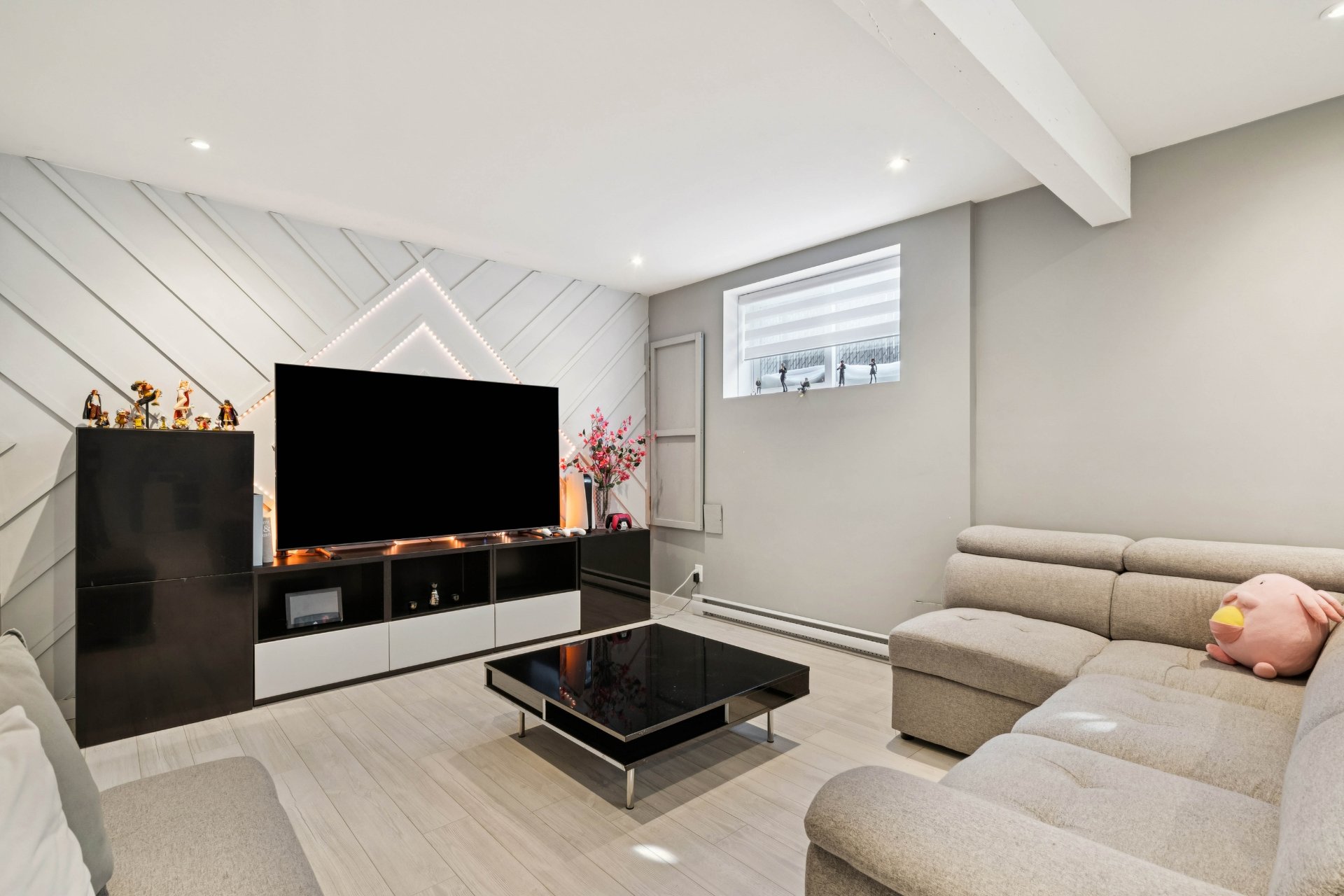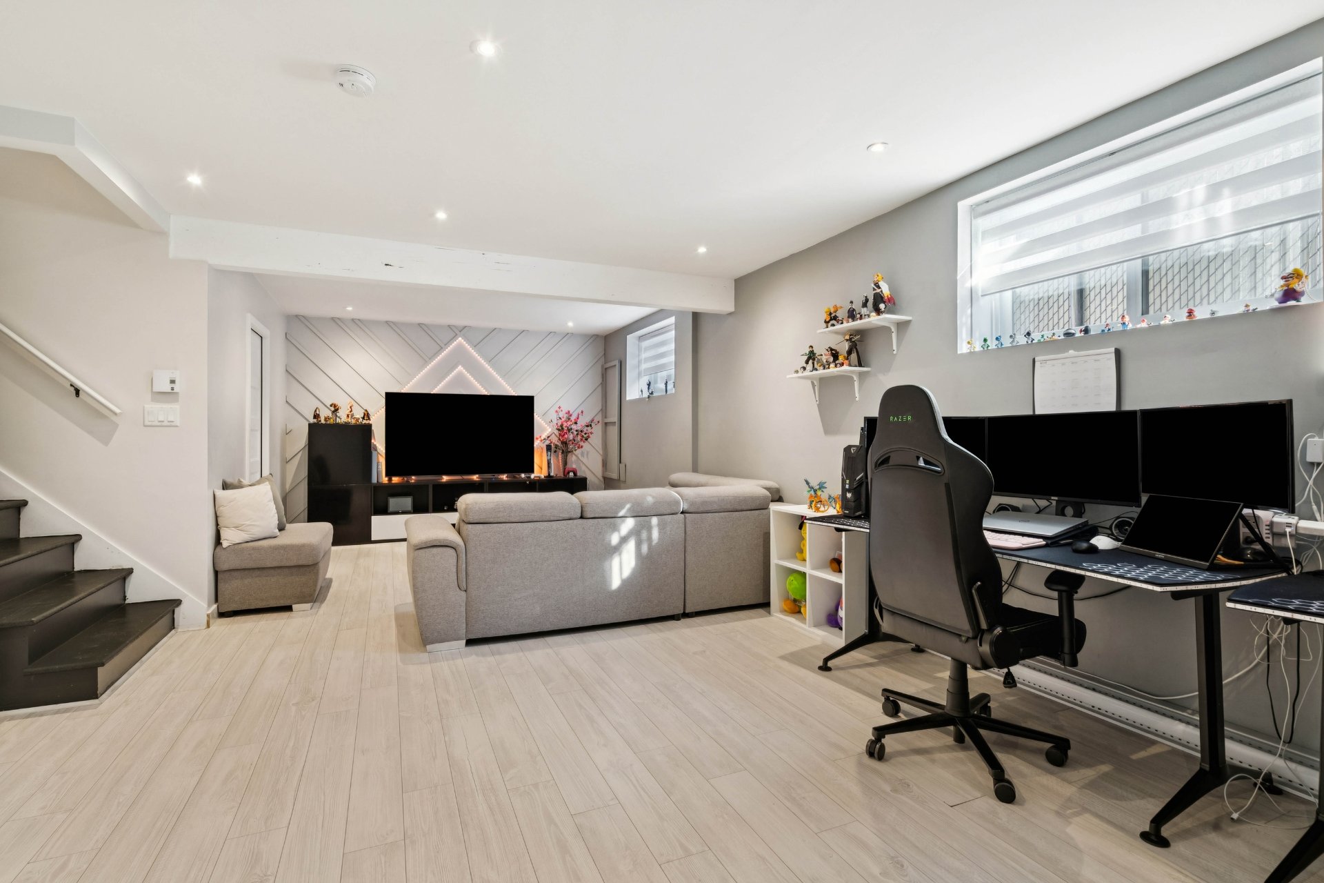 Le sous-sol, entièrement aménagé, propose une vaste salle