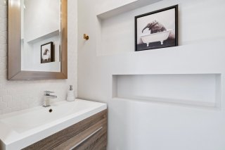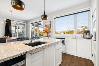 La cuisine, à la fois élégante et fonctionnelle, propose de