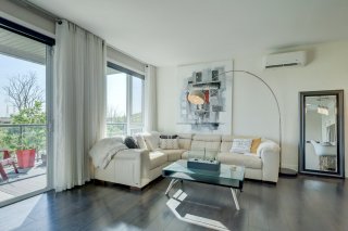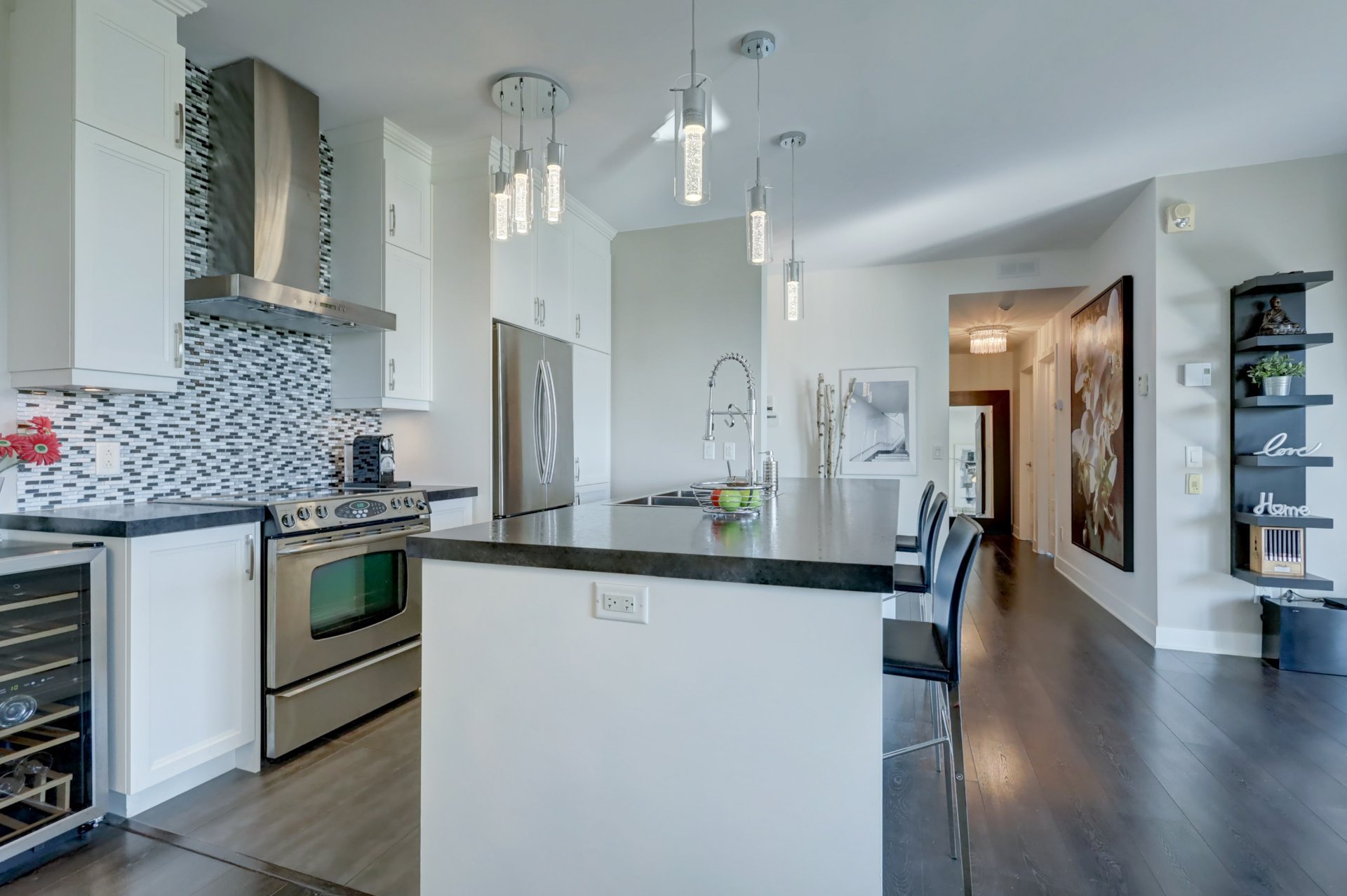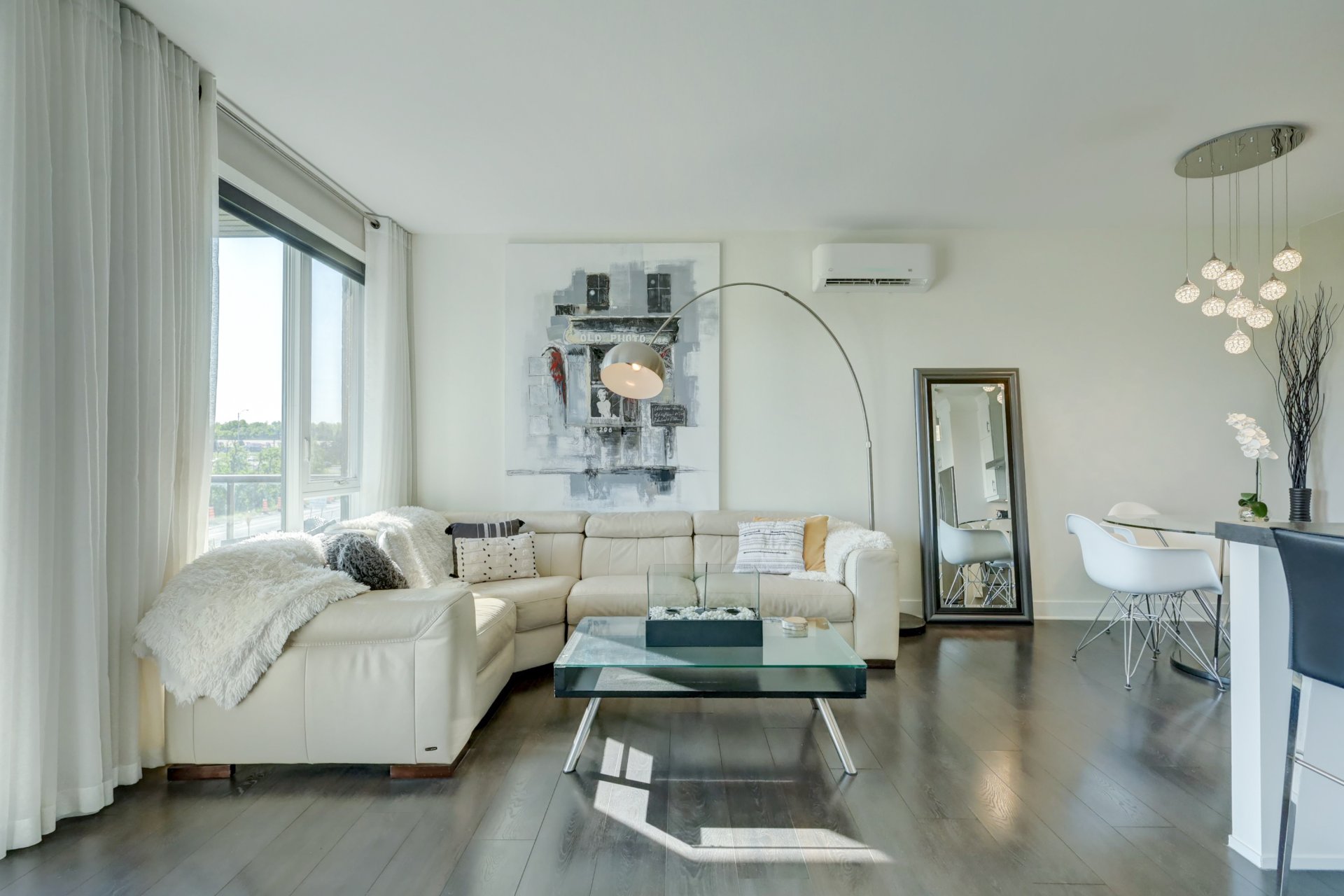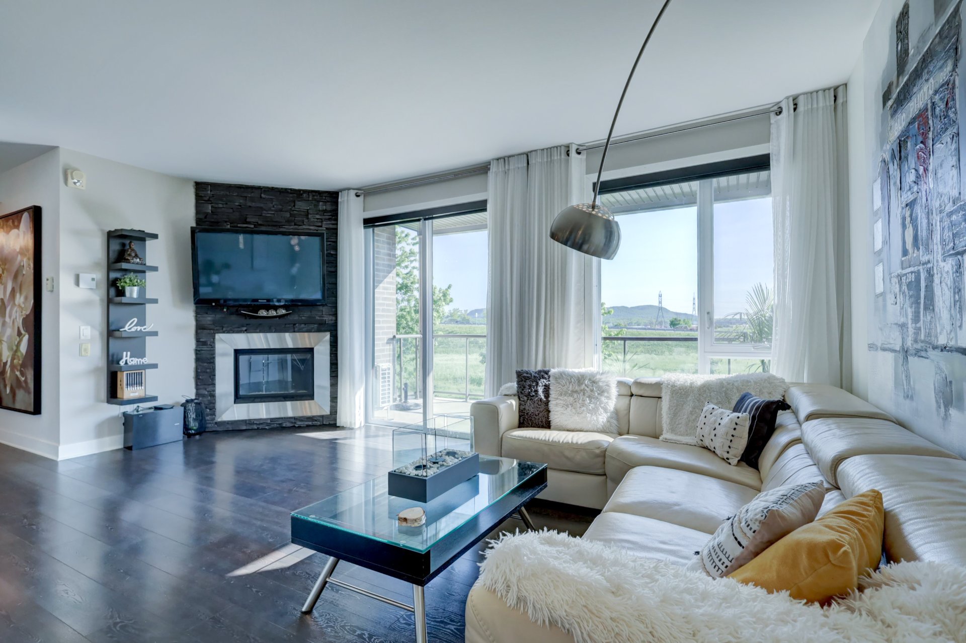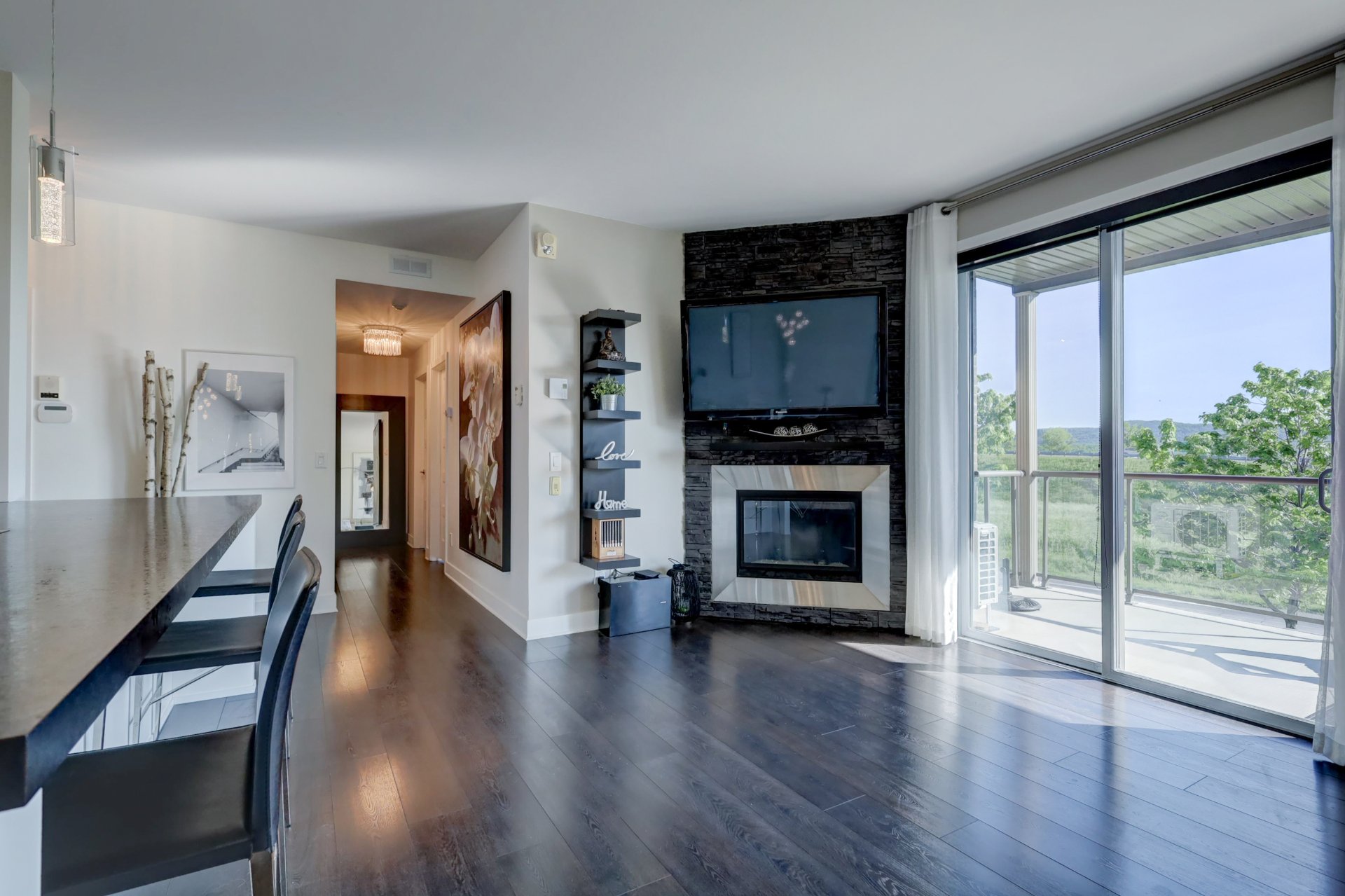 Inclus : Rideau, store, pole, luminaire, tablette dans la chambre, 2 étageres dans le salon noir