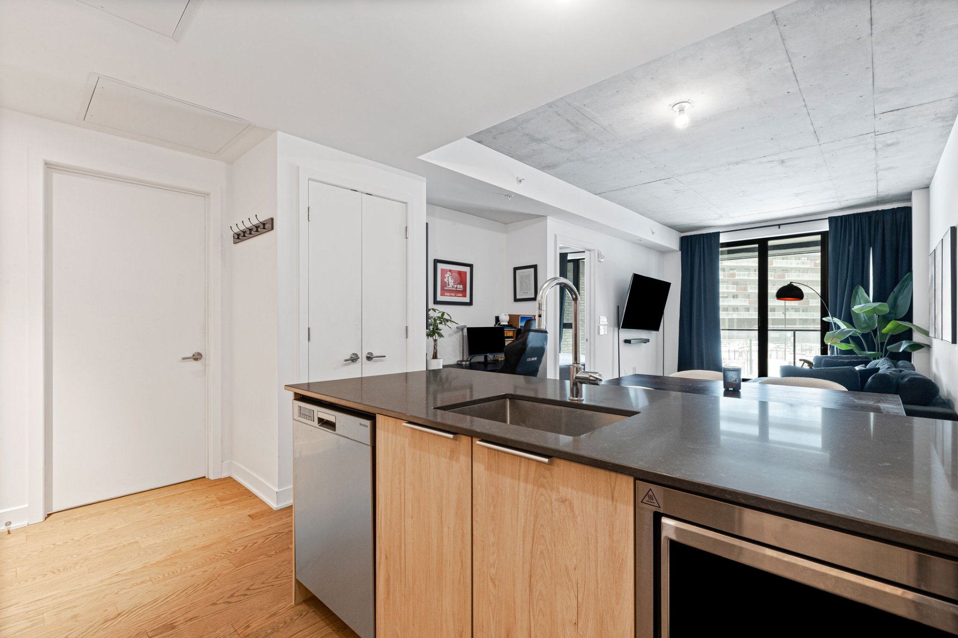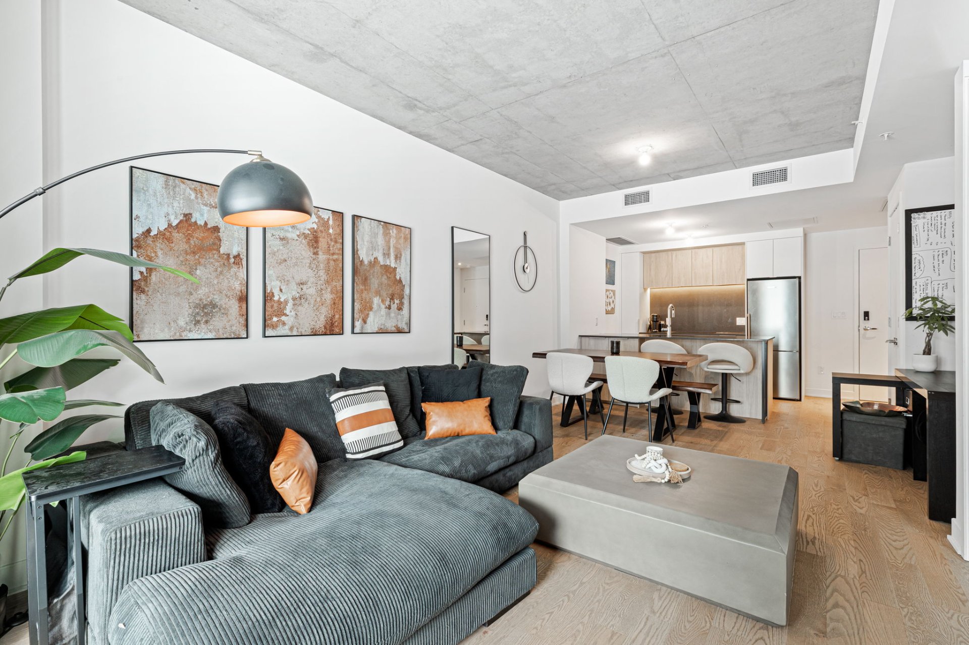 ouvert, comprenant une cuisine moderne avec grand îlot