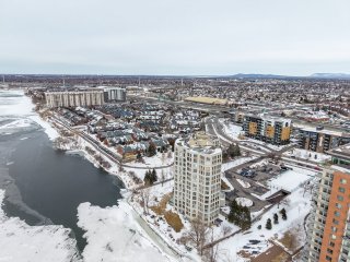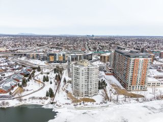 Situé dans le prestigieux complexe L'Esplanade à Brossard, ce condo bénéficie d'un emplacement exceptionnel en bordure du fleuve Saint-Laurent, offrant une vue panoramique ainsi que de superbes couchers de soleil. L'unité se distingue par sa grande fenestration qui procure une luminosité abondante tout au long de la journée. La cuisine, à la fois pratique et bien aménagée, est équipée d'un lave-vaisselle. Une laveuse-sécheuse est également intégrée dans un espace de rangement. Le condo comprend une spacieuse chambre à coucher ainsi qu'une salle de bain.