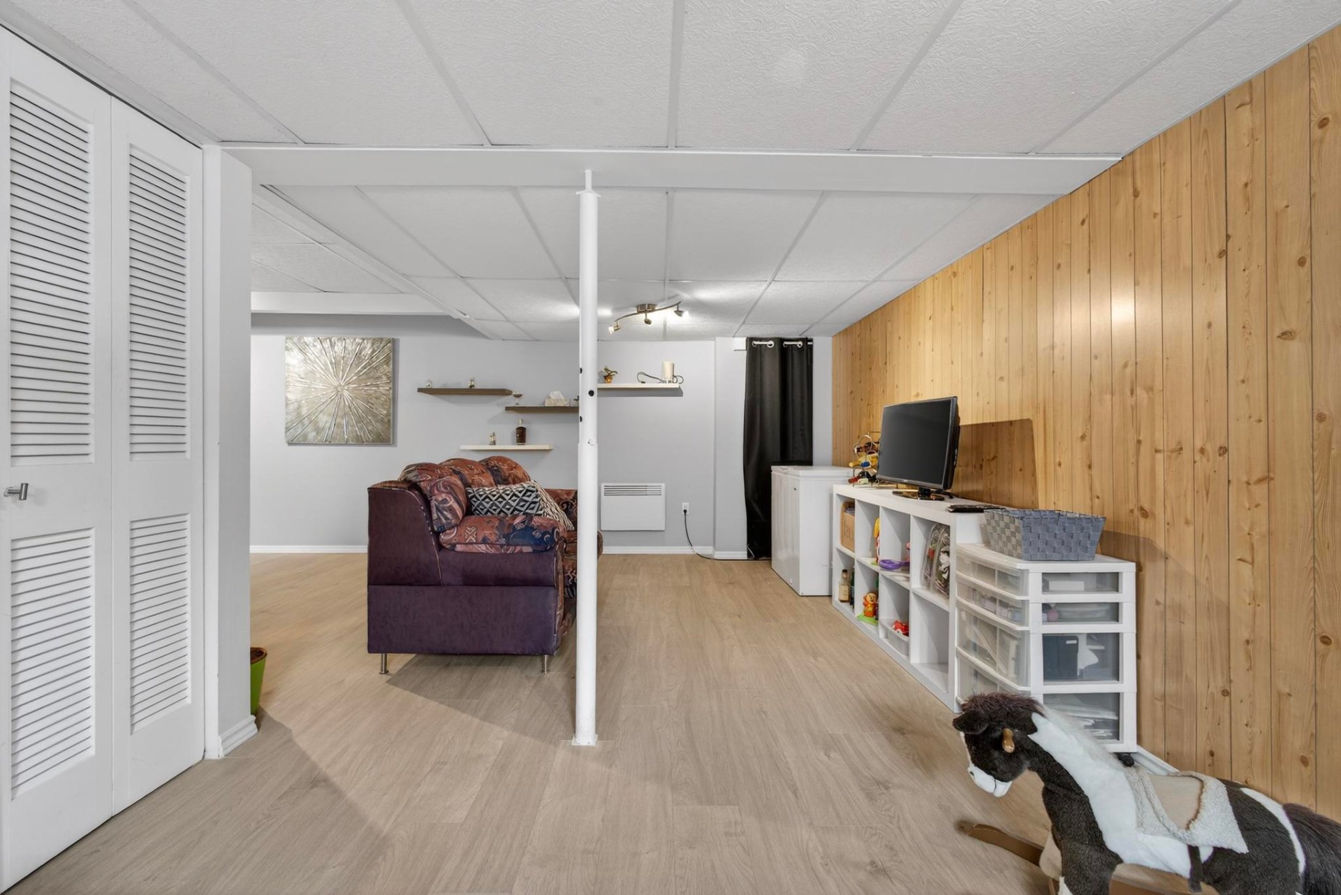 Le sous-sol aménagé avec salle de séjour devient l'espace